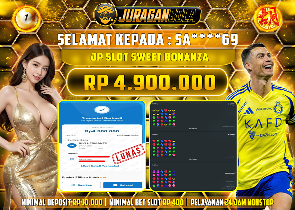Selamat kepada user id: SA****69 telah berhasil mendapatkan kemenangan pada permainan SWEET BONANZA dengan kemenangan sebesar Rp.4.900.000, Setelah mengisi formulir withdraw dengan kurang waktu 3-10 menit pihak JURAGANBOLA sudah melakukan transfer kepada pemilik userid dan dana sudah dapat dicairkan oleh pemenang. Bukti pembayaran yang kami berikan merupakan bukti pembayaran yang SAH / VALID yang langsung didapatkan melalui tanda transfer transaksi dari bank resmi indonesia.