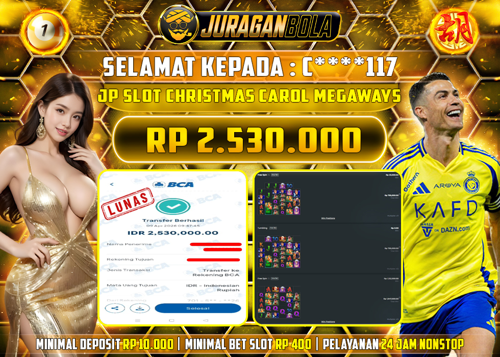 Selamat kepada user id: C****117 telah berhasil mendapatkan kemenangan pada permainan CHRISTMAS CAROL MEGAWAYS dengan kemenangan sebesar Rp.2.530.000, Setelah mengisi formulir withdraw dengan kurang waktu 3-10 menit pihak JURAGANBOLA sudah melakukan transfer kepada pemilik userid dan dana sudah dapat dicairkan oleh pemenang. Bukti pembayaran yang kami berikan merupakan bukti pembayaran yang SAH / VALID yang langsung didapatkan melalui tanda transfer transaksi dari bank resmi indonesia.
